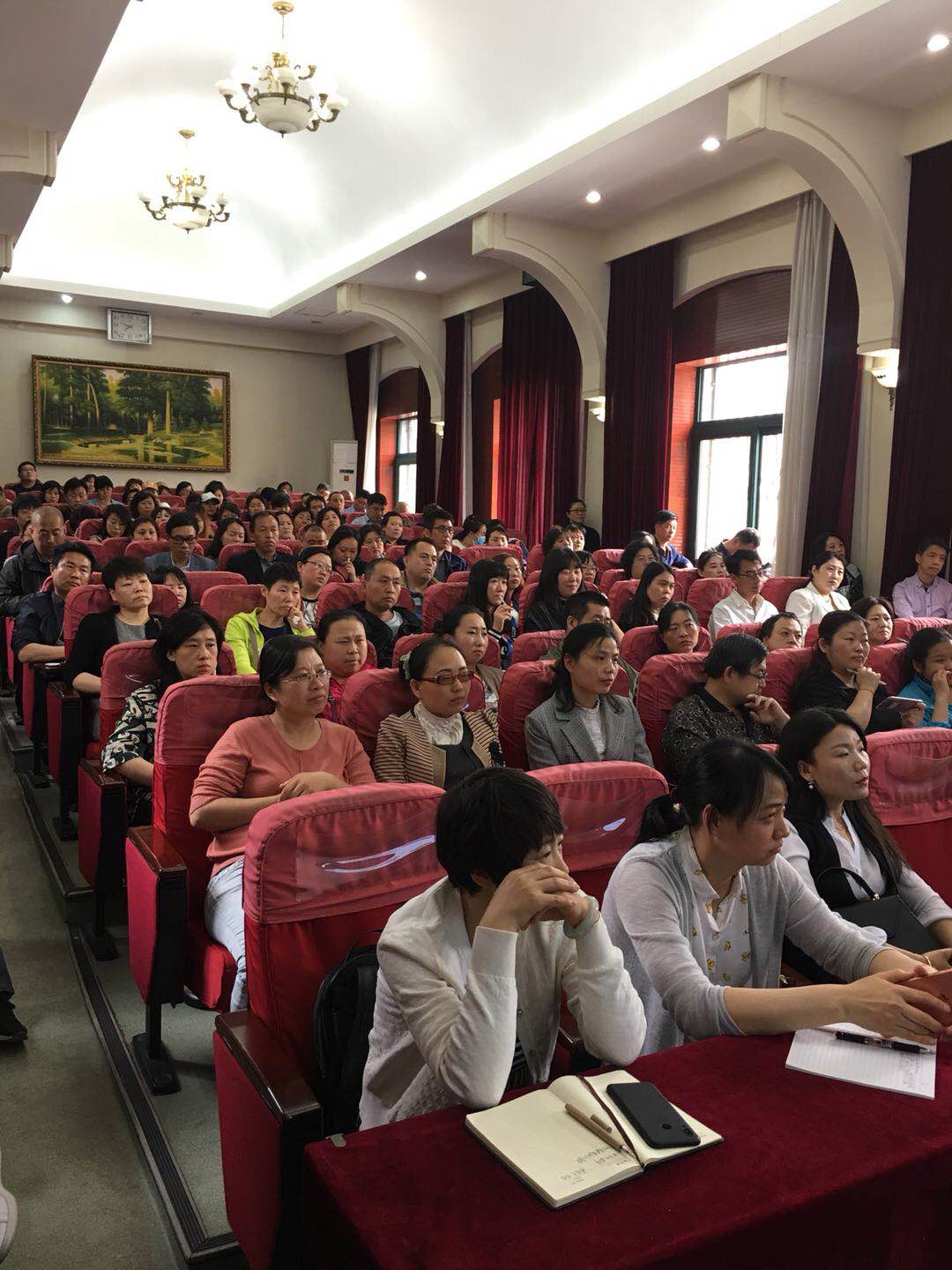 初一年级学生家长认真聆听高老师的讲座